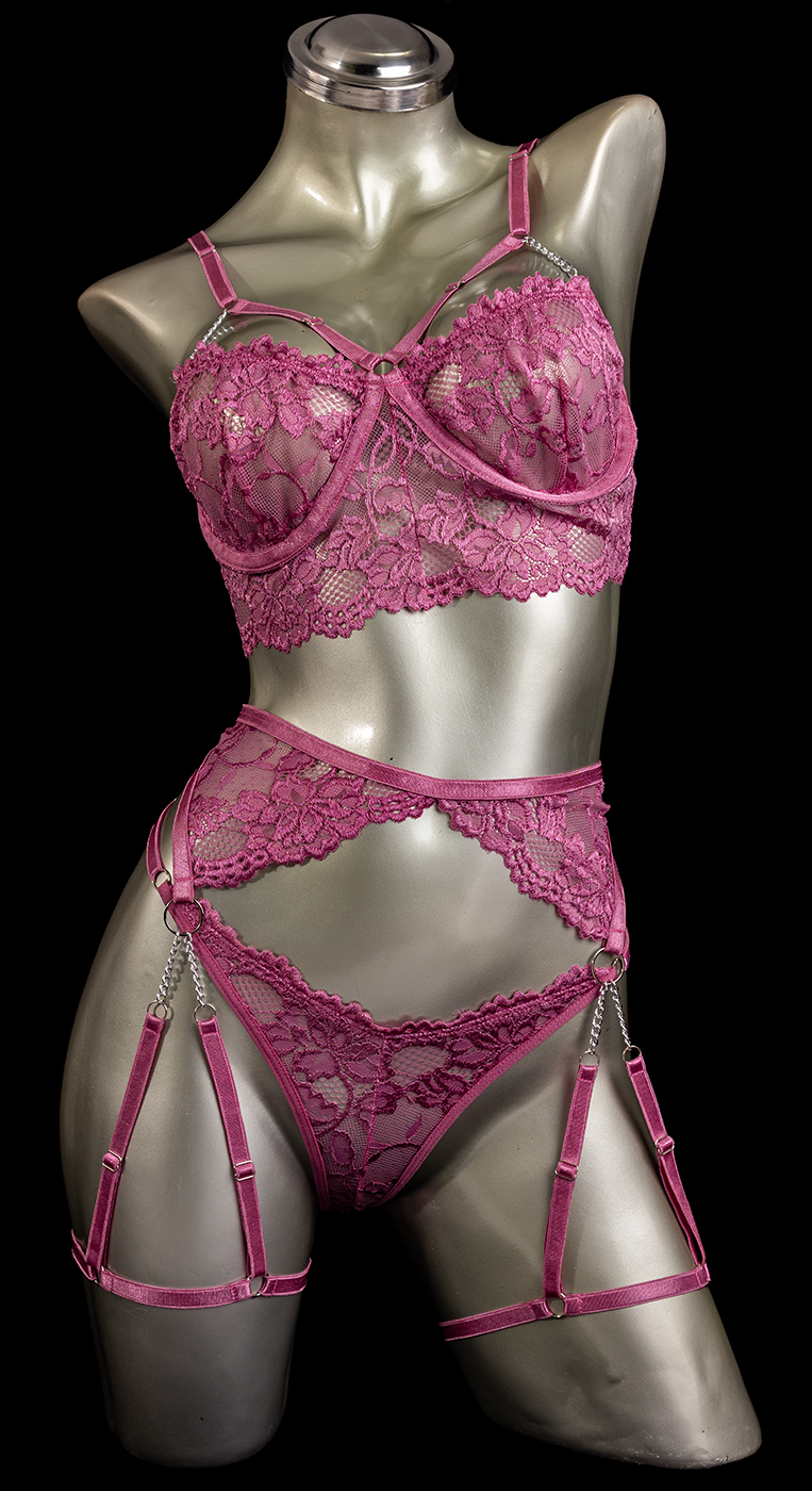 conjunto liguero rosa oscuro