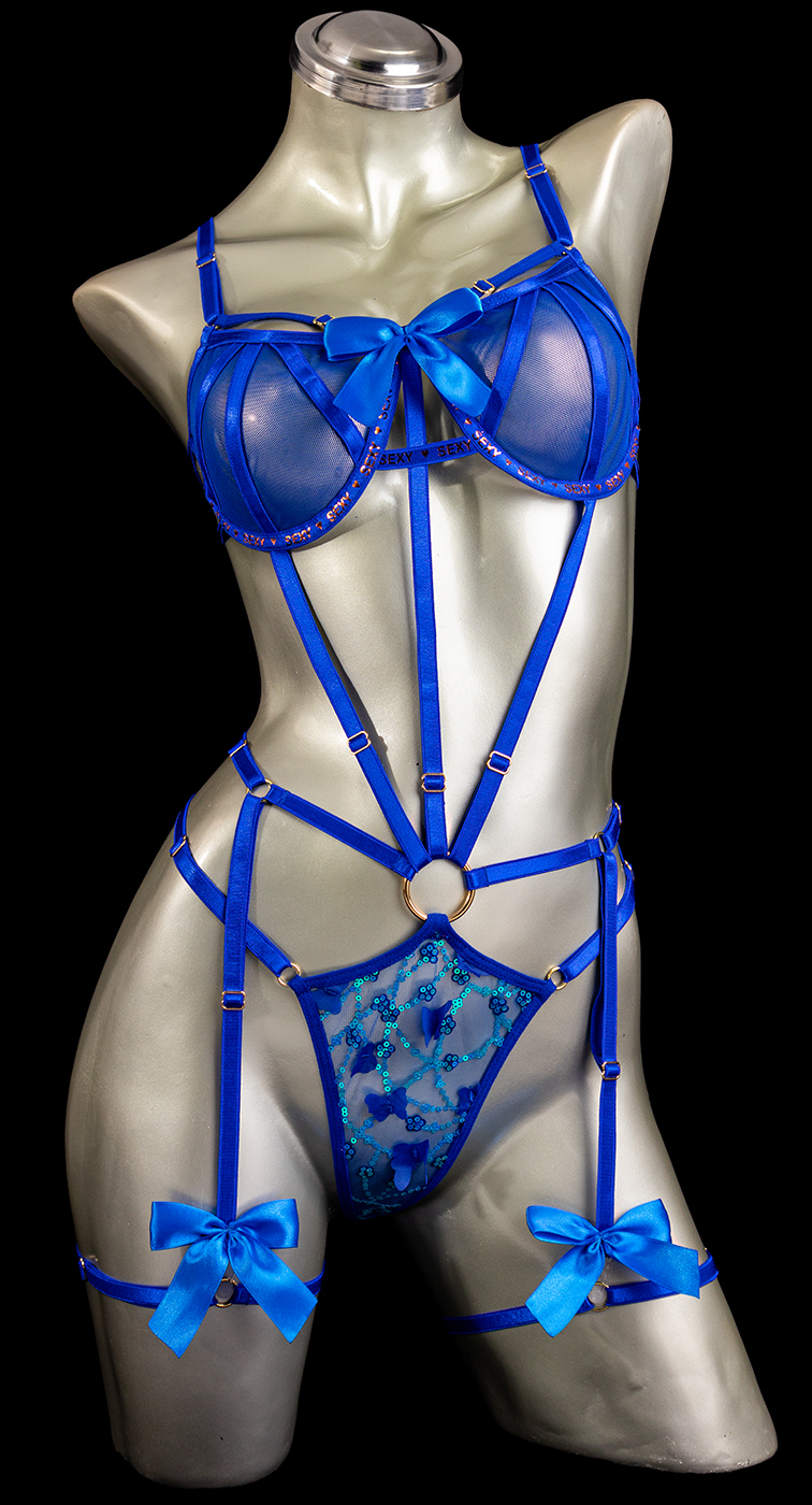 Triquini color azul rey elaborado en bipiur y mallatex con copa varilla talla 34/36, herrajes dorados y tiras corredizas